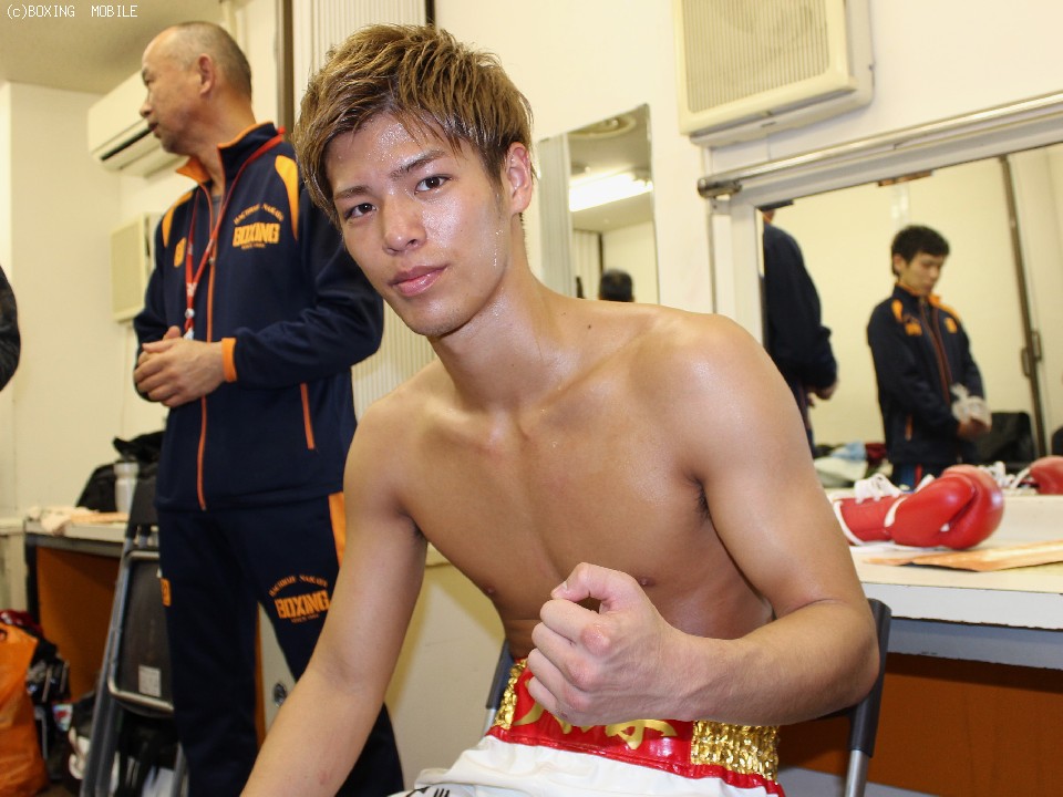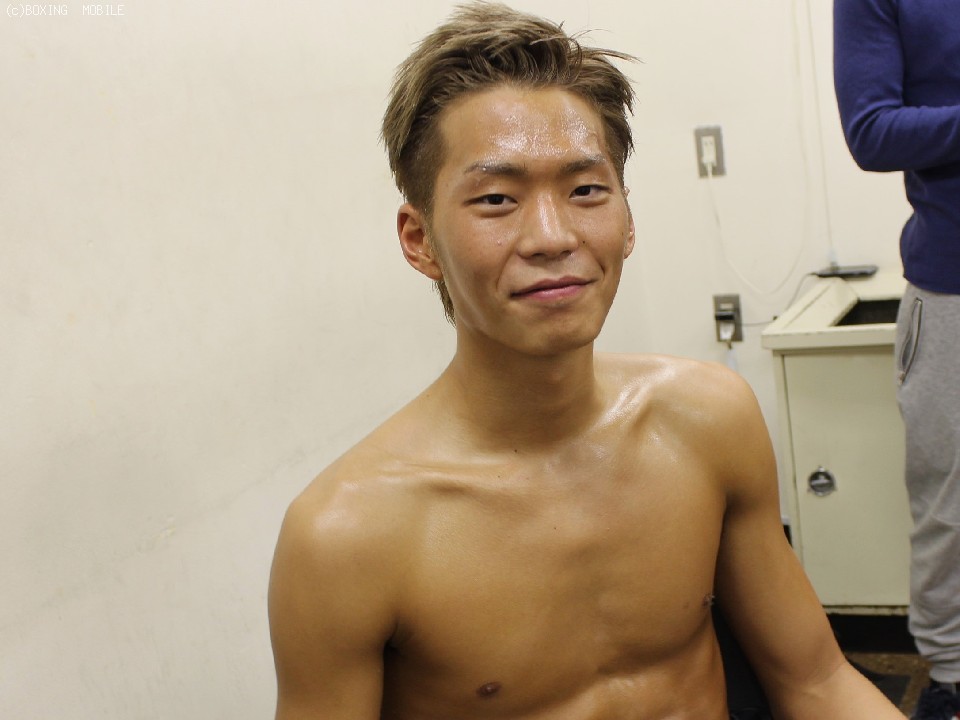 「左フックは自信があるので当たれば倒れると思っていたが、思っていた以上に早くダウンを取れた。スパーで気付いたことがあってそれを意識するようになったらパンチが見えるようになった」と冷静に試合を振り返った。「去年からジムが連勝を続けているので少しプレッシャーがあったが、勝ててホッとしている」と白い歯を見せた。