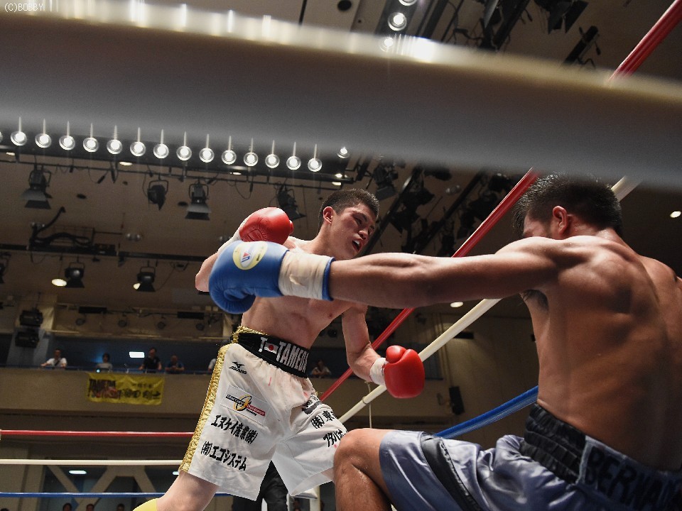 最近は元WBA世界スーパーバンタム級王者の下田昭文(帝拳)ともスパーリングで拳を交えていた溜田。「サウスポーと向き合うこと自体、かなり久しぶりだったのでやりづらかった。下田選手はさすがポジション取りが巧みで勉強になりました」。そう語る目に充実感が出ていた。