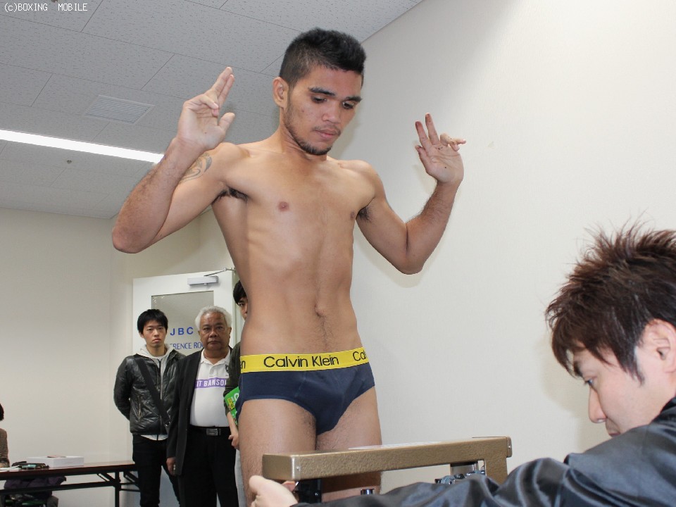 今回が3回目の来日となるトゥビエロンも100gアンダーの56.1kgでクリア。世界ランカーである岩佐に一泡吹かせようと鋭い眼光で会場をあとにした。