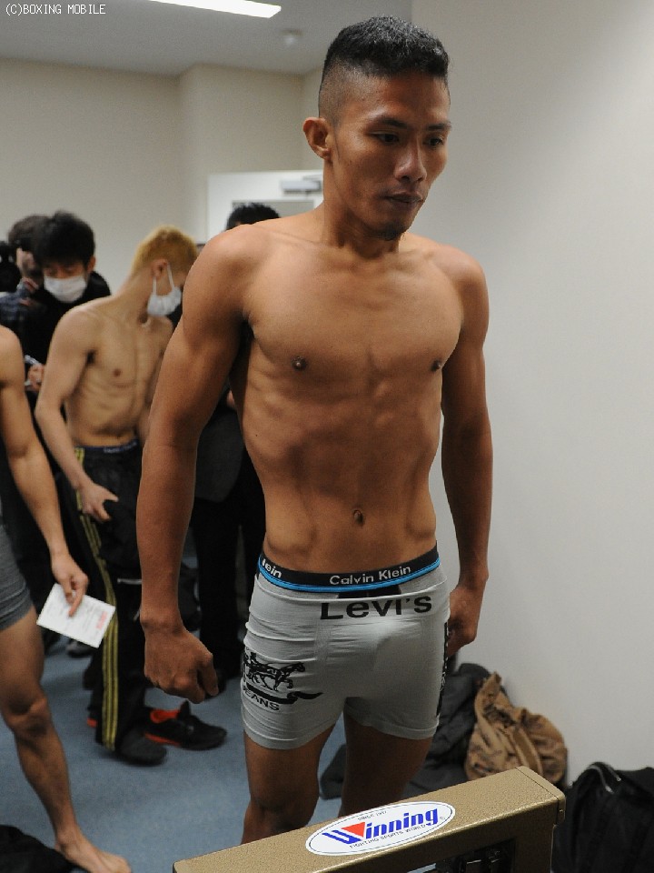 リラックスした表情で会場に訪れた和氣はリミットの56.2kgを100g下回って一発クリア。対戦相手のインドネシア・Sバンタム級王者ワルド・サブ(26)は54.7kgでパスした。