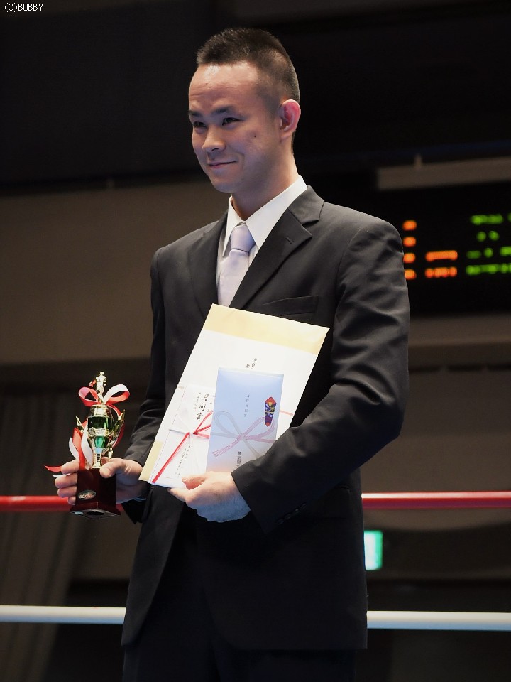 先月16日に暫定王者の中澤将信(帝拳)を圧巻の3回TKOで退け、王座統一をはたした岡田は2度目のMVP授賞。栄誉を喜ぶとともに、4月19日にセットされたチャンピオンカーニバル、同級1位の麻生興一(三迫)との4度目の防衛戦をアピールし、「この大会でもMVPを狙い、賞金の30万円を手にいれる」と目を輝かせた。