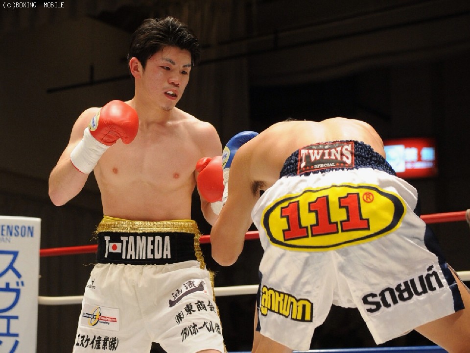 ダウンシーン5度の激闘を演じ、会場を盛り上げた溜田だが「序盤は様子を見ようと思っていたらダウンが取れたので余裕が出すぎてしまったところをもらってしまった」と2011年東日本新人王決勝戦以来に奪われてしまったダウンに苦笑いながら反省の弁。「ダウンをもらい焦ってしまったが、手を止めたら打ち込まれると思って逆に手数を出そうと思った」と語った溜田。「早くタイトル戦をやりたいが、課題が見えたのでまずは嶋田トレーナーや会長と修正していきたい」。「お客さんを沸かせる試合を常にしていきたい」とヨネクラジムの22歳の若きエースは声を弾ませ飛躍を誓った。