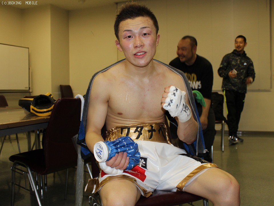 3ラウンドに目を痛めたという渡部は「途中で心が折れそうになったが、発破をかけてもらい持ち直すことができた。今回負けたら3連敗だし背水の陣で臨んだので勝ててうれしい」とホッとした表情。「相手は気持ちが強かったが地元の北海道からも観に来てもらって負けるわけにはいかなかった」と激闘を物語った。