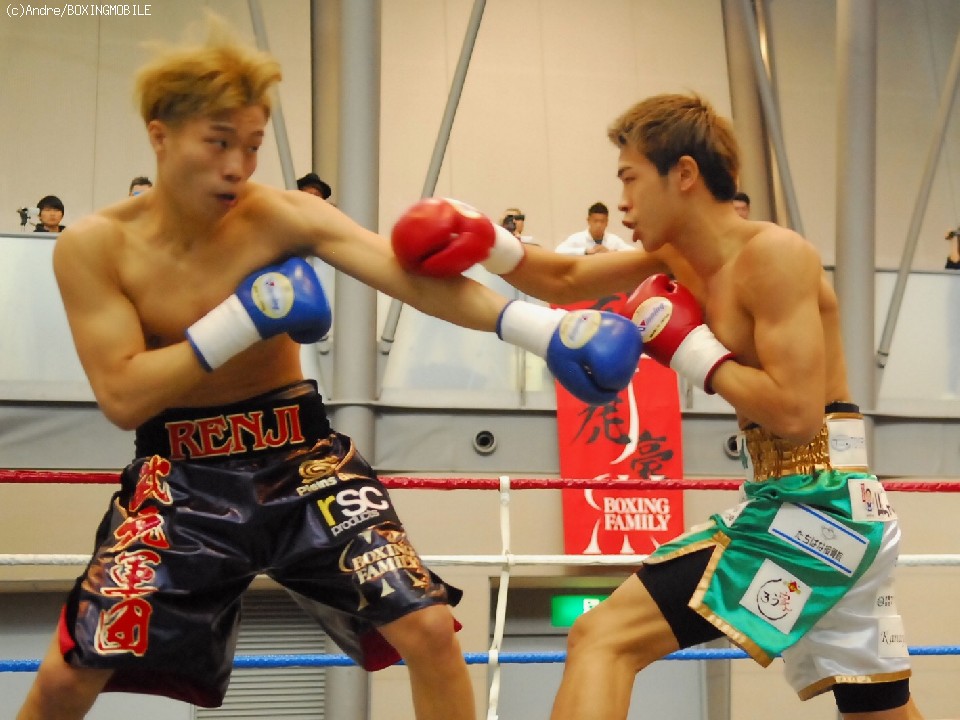 昨日の計量で市村は体調不良からリミットを1.6Kgオーバーしたが、水野陣営の了承のもと試合は行われた。序盤からパワーの市村が昨日の体調不良から回復し渾身の右ストレートを振るう。対して、水野はスピードのあるワンツーで応戦する。3ラウンド、水野のヒッティングで市村の左目上をカットさせると勢いを増し左ボディを突き刺す。ボディ攻撃に足の止まった市村に対して攻勢を強める水野が4ラウンド終盤、強烈なワンツーをヒット。市村は力なく膝から崩れダウン。これ以上の試合続行は不可能とみたレフェリーがそのまま試合をストップ。昨年の西部新人王代表決定戦の敗戦から日本ランカーを撃破した水野が戦線に華々しく復帰した。