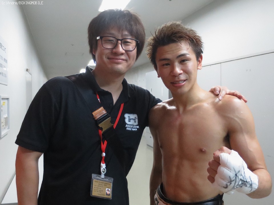 水野を担当する加藤功一トレーナーは「作戦通りでした。左ボディを重点的に練習していたし、相手の計量オーバーで心配してましたけど、拓哉は成長したと思います。松田ジムでは久しぶりのランカーになれるかな。よかったです」と喜びを語った。