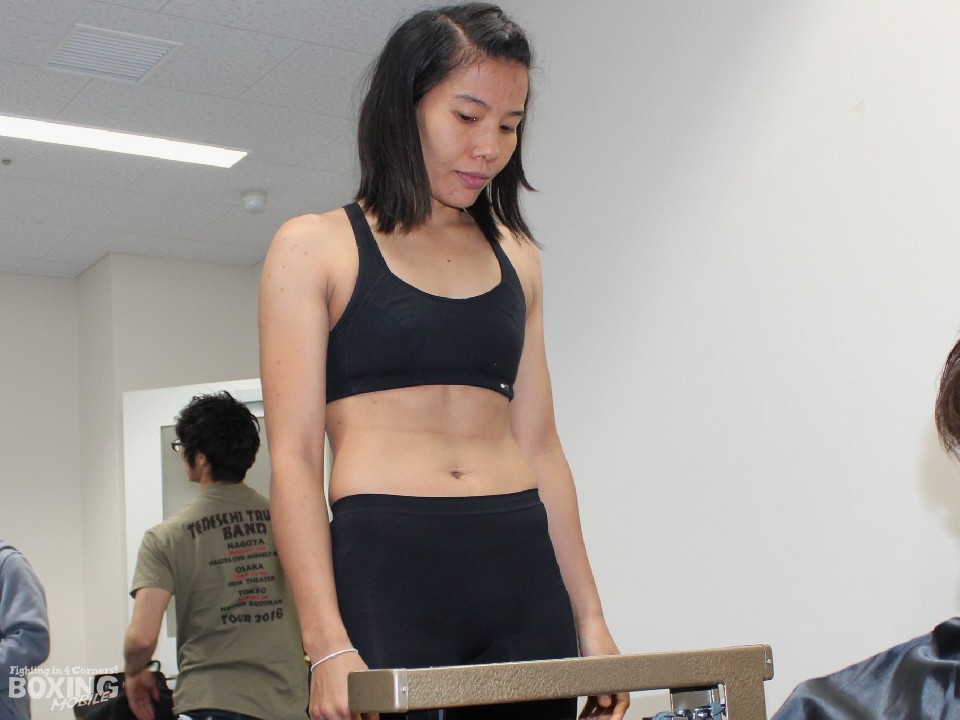 昨年10月、小関桃(33=青木)との王座統一戦に敗れベルトを失って以来の再起戦となる宮尾はリミット800gアンダーとなる47.2kgでなんなくクリア。「いつもより試合間隔が無性に長く感じた。不安がありいつもよりドキドキしている」と5ヶ月ぶりの試合に緊張していることを告白。「前回、負けてからこれまでしてこなかったインファイトを練習してきたので明日はしっかり見せたい。良い勝ち方をして次に繋げる」と失ったベルトを取り戻すためのステップとしたいと語った。