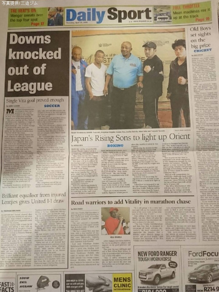 WBAインターコンチネンタル・スーパーフライ級王座決定戦で、18戦15勝(12KO)3敗と高いKO勝率を誇るルズコ・シヨ(南ア)とベルトを競う戸部洋平(三迫)。元世界王者のシンピウェ・ベチェカ(南ア)とフェザー級10回戦で拳を交える溜田剛士(ヨネクラ)が21日、決戦の地、南アフリカで前日計量を終えた。