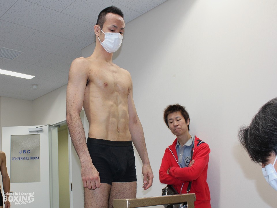 最初に秤に乗った新藤はウェルター級リミット、200gアンダーの66.4kgで一発でパス。有川の試合は前回の試合を含めて何度も観ているという新藤は「戦績が示す通りパンチのある選手。基本的にはリードを出しつつになるが、打ち合いも辞さない」とチャンピオンらしく貫録のある姿勢をみせた。「明日は内容が求められるので明確に勝つ。新藤は強いと思われるような試合をみせるためにも後半ストップが理想」と必勝を誓った。