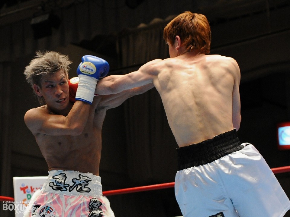 第5試合は51.5kg契約8回戦、日本フライ級7位の大平真史(32=マナベ)と松山真虎(26=ワタナベ)が激突。開始から松山が距離を詰めて左ボディを中心に攻め立てるが大平はジャブを伸ばしワンツーで反撃。3ラウンド、松山はジャブを掻い潜ってボディをコツコツ叩くと大平は後退し、偶然のバッティングで左目上をカット。一進一退の攻防が続いたが、松山の手数が勝り判定をものした。