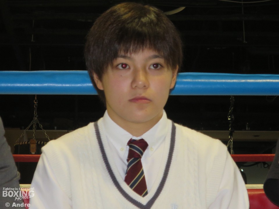 続いて女子高生ボクサーの小村は「8月7日デビュー戦が決まりました。デビュー戦ということで緊張もかなりしているのですが、しっかり練習もしてきたので楽しみです。2ラウンド以内には倒したいと思います」と笑顔で決意表明した。