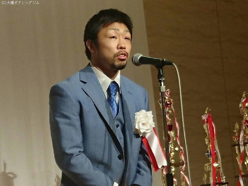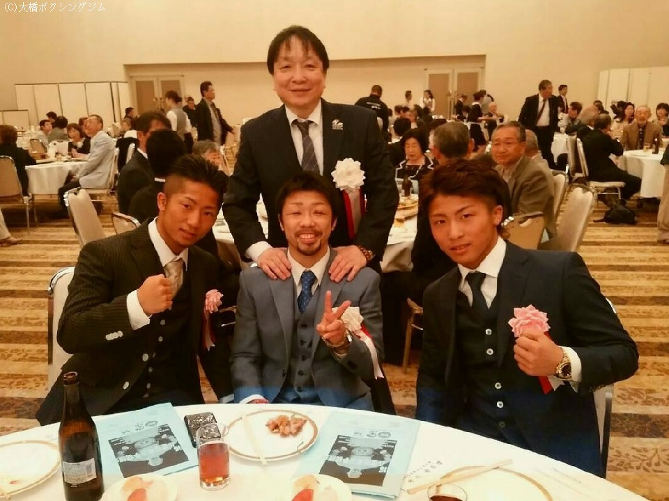 会には大橋秀行会長をはじめトレーナーの松本好二氏、佐久間史朗氏、またWBO世界スーパーフライ級王者・井上尚弥(23)、東洋太平洋スーパーフライ級王者・井上拓真(20)兄弟も祝福に駆けつけ華を添えた。