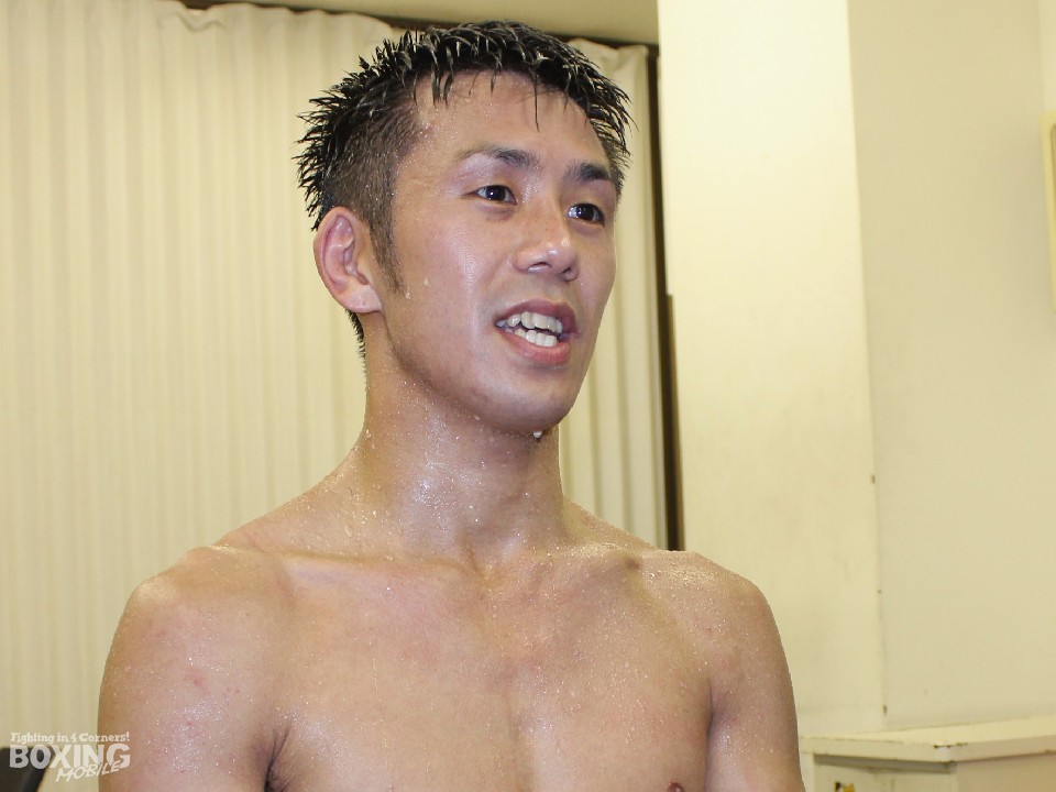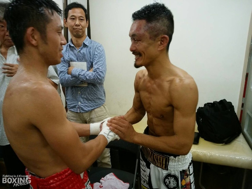 大嶽の執念に手を焼きながら最後までペースをわたさなかった粉川だが、控室では笑顔はなし。「何度も効いているのはわかっていたがうまくいかなかった。中盤くらいから倒せるかなと思ったが、少し安全運転してしまった」と反省の弁が続いた。宮田博行会長によると次戦は10月25日に日本タイトルの防衛戦の予定だが、その前に世界戦が決まればそちらを最優先させるという。「(世界戦が決まったら)死ぬ気で獲りに行きます。一応、今年の大晦日はスケジュールを空けておきます」と目を輝かせた。