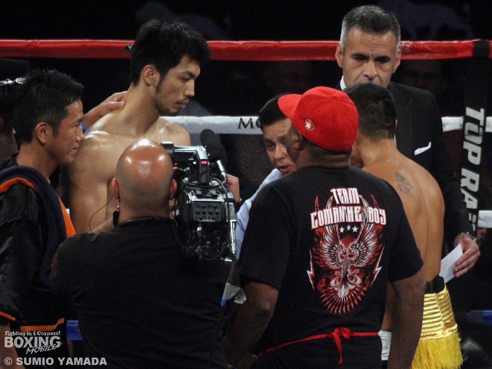 3連続KO勝ちの村田は11戦全勝(8KO)。先住民族コマンチェ族の末裔というタドニッパは42戦34勝(24KO)3敗3分2無効試合。