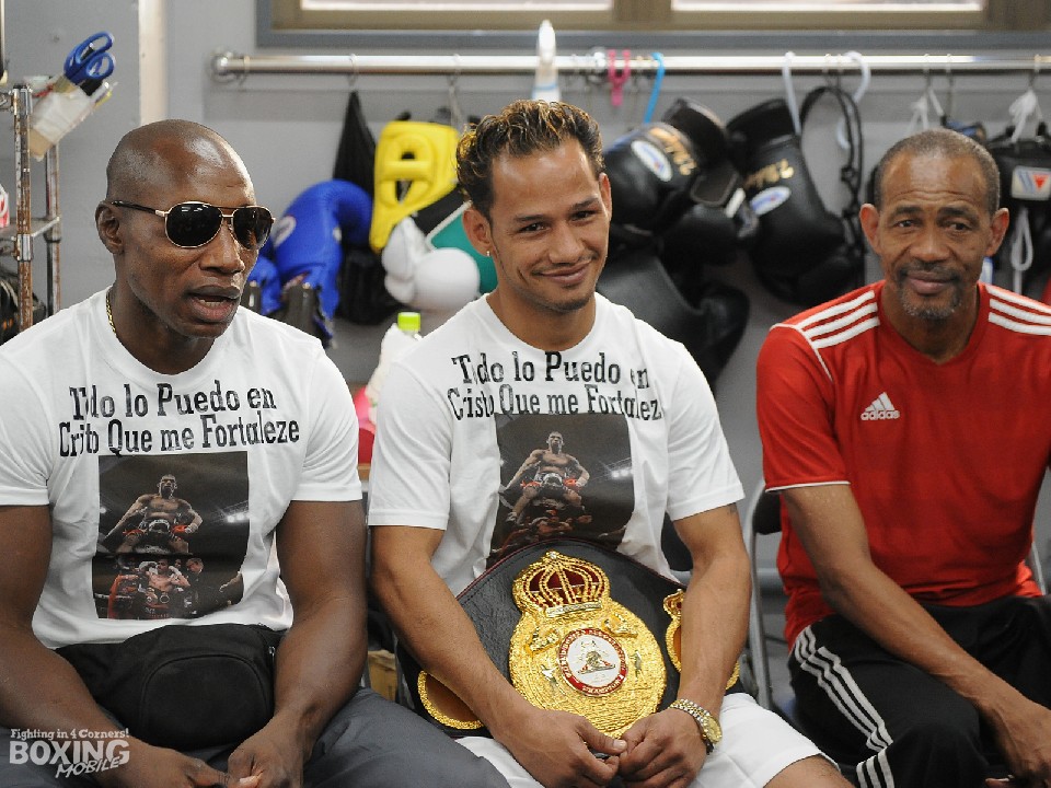 同行したトレーナーのモスケーラ氏は、今年5月のタイトル戦で内山高志(ワタナベ)からWBA世界スーパーフェザー級スーパー王座を奪取したジェスレル・コラレス(パナマ)の指導者でもあり、今回も秘策を持って統一戦に臨むと話した。また、もう一人のチーフトレーナーのアローヨ氏も、「コンセプションはエクセレントなボクサー」と語ると、その強打を「城壁、馬が蹴るよう」と形容し、対戦する河野に同情した。