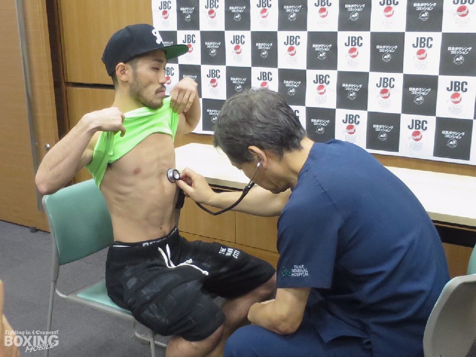 8月31日(水)、東京・大田区体育館で開催されるWBA世界ライトフライ級タイトルマッチに出場する王者田口良一(30=ワタナベ)が後楽園ホール展示場、挑戦者の宮崎亮(27=井岡)が多根総合病院でそれぞれ予備検診が行われた。両者は明後日の決戦に向けて静かに闘志を燃やした。