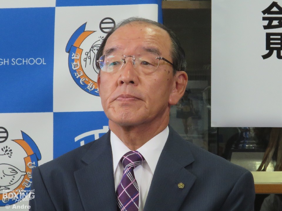 会見の冒頭、中京高校松下邦夫校長から「この度、本校の畑中建人がプロデビューすることが決まり、発表会見を行うこととなりました。本校の卒業生で日本人最速世界王者になった田中恒成(21=畑中)に続き、日本初の親子世界王者を目指していきますのでどうぞ応援よろしくお願いいたします」と挨拶した。