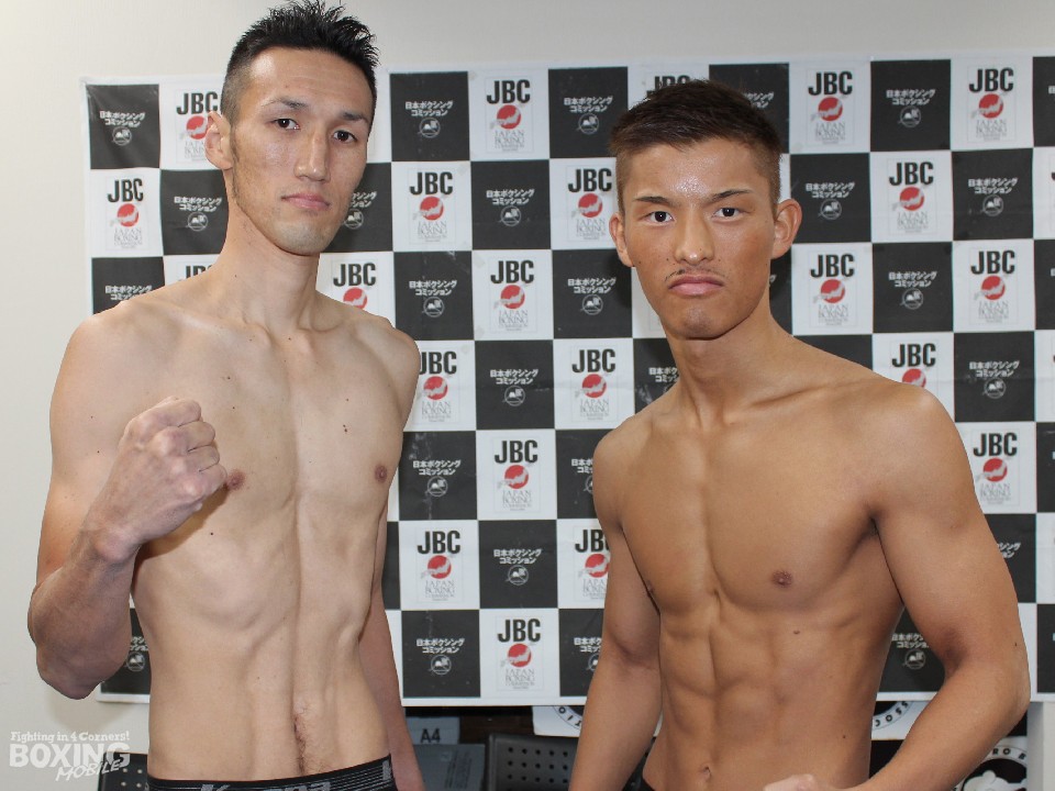 明日25日に後楽園ホールで開催される「DANGAN168 Tomorrow's Champion32」のアンダーカードは好カードが出揃った。セミファイナル、フライ級8回戦で拳を交える日本同級1位ユータ松尾(27=国際)と2013年全日本フライ級新人王の大保龍斗(21=横浜さくら)の前日計量が都内の日本ボクシングコミッション事務局で行われた。