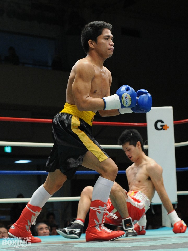 前WBC世界スーパーフライ級王者カルロス・クアドラス(帝拳)への挑戦失敗から1年。元WBA世界フライ級暫定王者で現WBC世界スーパーフライ級8位の江藤光喜(28=白井・具志堅)が5日の後楽園ホールで再起2戦目に臨んだ。対戦相手のOPBF東洋太平洋同級10位ジュン・ブラゾ(24=比)は、9戦5勝(5KO)1敗3分と5勝はすべてKO勝ちの強打者。初回から長身江藤の懐を脅かすと、左フックでダウンを先制した。