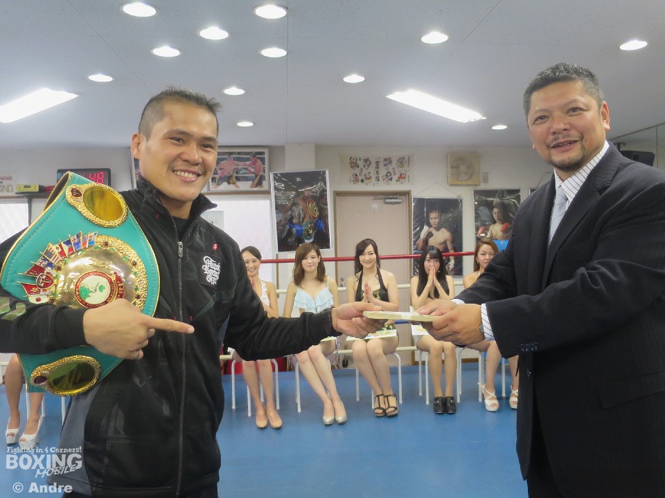 また、この日は11日に東洋太平洋バンタム級王座を奪取したマーク・ジョン・ヤップ(27)もジムに姿を見せ、会長からファイトマネーとは別にお祝いとして現金100万円が贈られた。ヤップは「会長には本当に感謝している、大事にしたい」と満面の笑みを見せた。