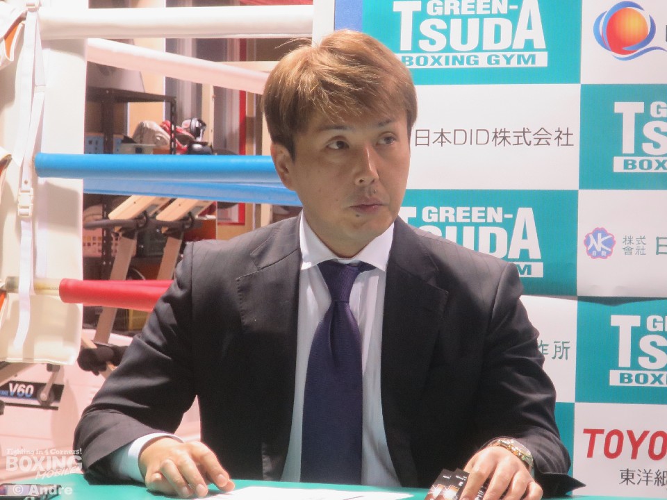 会見の冒頭、本石昌也会長は「12月4日のグリーンツダのイベント『CRASH BOXINGvol10』に関する会見を行います。まず、WBOアジアパシフィックウェルター級王座決定戦に出場する矢田良太です。この試合には僕も特別な気持ちで臨みます、今年はグリーンツダとして3回タイトルに挑戦しましたが、全敗でした。矢田は最終兵器です。必ず勝たせます。そして9月に移籍してきました京口竜人ですが、当初はすぐに試合を組む予定もなかったのですが、彼の頑張りを見て急遽参戦することにしました。そして現役女子高生ボクサーの小村楓香はプロ2戦目、なかなか対戦相手も見つからなかったですが、一階級下げて今回はアトム級で戦います。みなさん応援よろしくお願いします」と挨拶した。