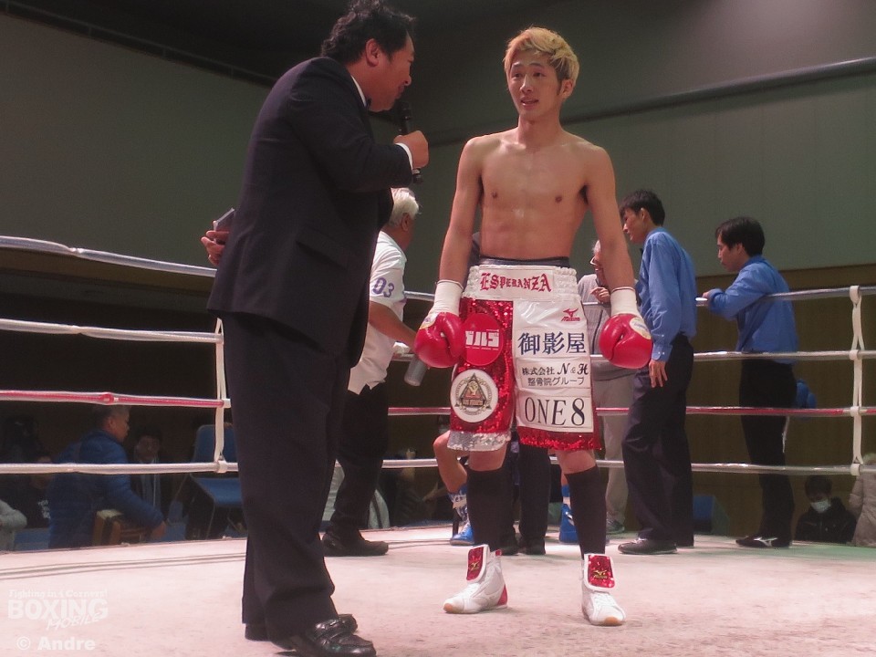 試合は序盤から入口が左右のボディでパニタンを攻め立て早々とペースを握った。すると1ラウンド中盤、入口が左ボディから右ストレートをヒットするとパニタンは大の字にダウン、そのまま10カウントを聞かせた入口が勝利、A級昇格をKOで決めた。