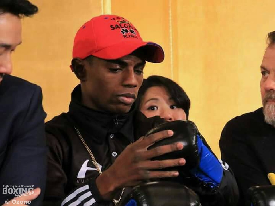 京都市内のホテルで30日、IBF世界スーパーバンタム級タイトルマッチに臨む王者のジャナタン・グスマン(ドミニカ)と挑戦者で同級5位の小國以載(28=角海老宝石)が調印式と前日計量に姿をみせた。グスマンは100gアンダーで計量をパス、挑戦者の小國もリミットでパスし明日に備えた。