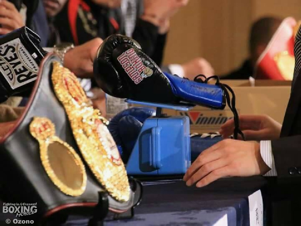 小國はメキシコ製8オンスの青色のグローブを選択。グローブチェックの際、小國陣営がグスマンのグローブが少し軽いのではと疑念を抱き秤で計測した結果同重量だったことがわかり疑念は払拭された。