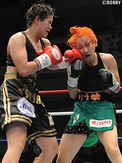 WBA世界女子スーパーフライ級タイトルマッチ。王者・天海ツナミ(山木)が元OPBF王者・藤本りえ(協栄)の挑戦を見事TKOで退けた一戦。