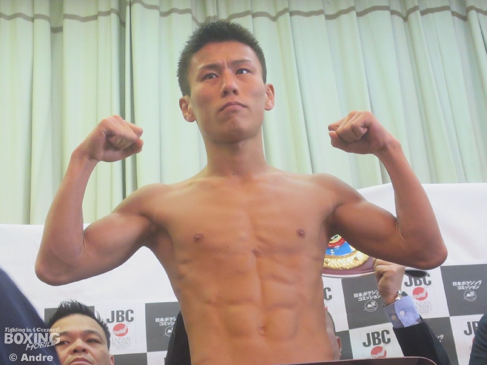 WBO世界ミニマム級暫定王者決定戦に出場する同級1位のモイセス・カジェロス(メキシコ)と同級2位の福原辰弥(本田F)は25日、熊本県上天草市内のホテルで前日計量に臨んだ。熊本県では34年ぶりの世界戦、勝てば熊本県初の世界チャンピオンとなる福原は「熊本を元気にする」と気合いに入った表情を見せた。