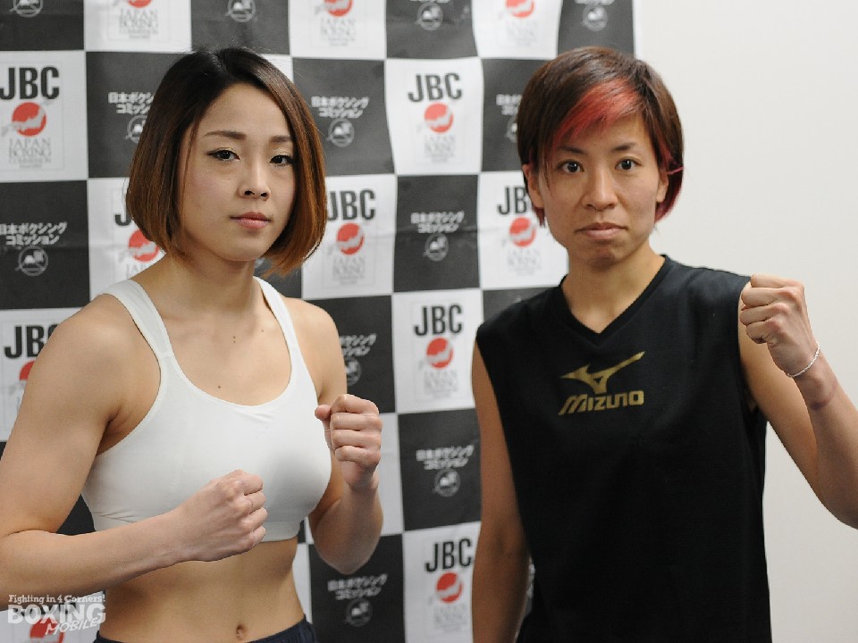また、第5試合の女子ライトフライ級8回戦に出場するOPBF同級2位の緒方汐音(28=ワイルドビート)とOPBF同級1位の矢吹純(25=協栄)は、ともにリミットの48.9sでパス。初の東京進出となる緒方は、「気持ちで負けないよう、精一杯頑張ります」と話し、6戦全勝3KOの矢吹は「技のレパートリーが増えたので明日はKO狙いで暴れます」と気合いを入れた。
