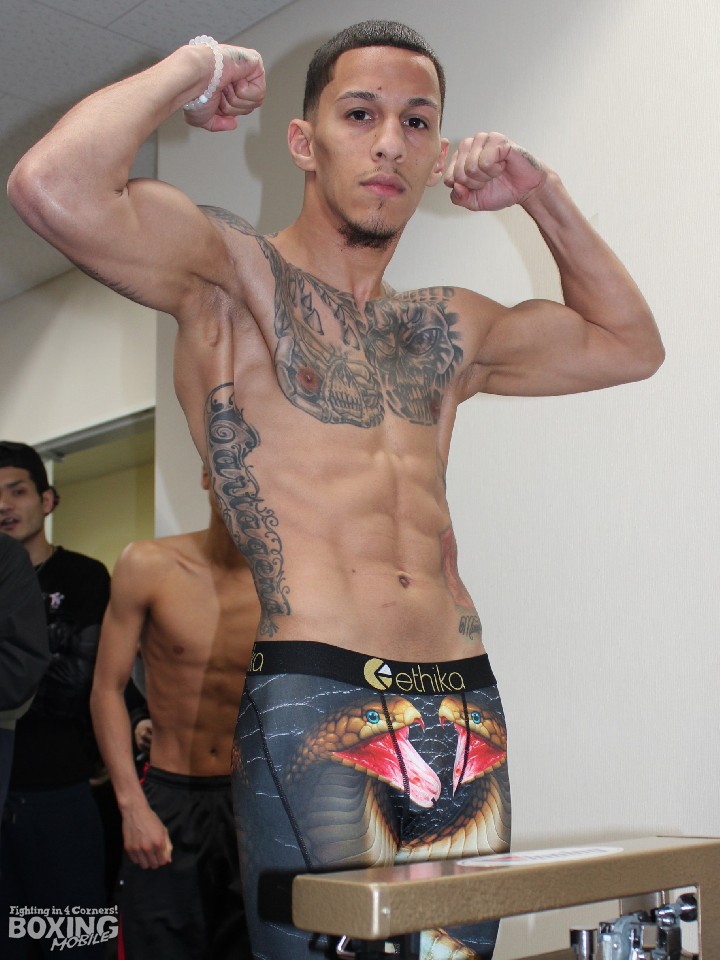これが初来日となるカルタヘナは200gアンダーの50.6kgで秤を降りた。「明日はビッグチャンス。相手は素晴らしい選手だが、すべてをぶつける。これまで3敗しているが、対戦相手は自分より上の階級の選手だった。フライ級の試合では負けたことがない」と気を吐いた。「明日は勝って彼女にプロポーズするよ」と笑顔を見せて計量会場を後にした。