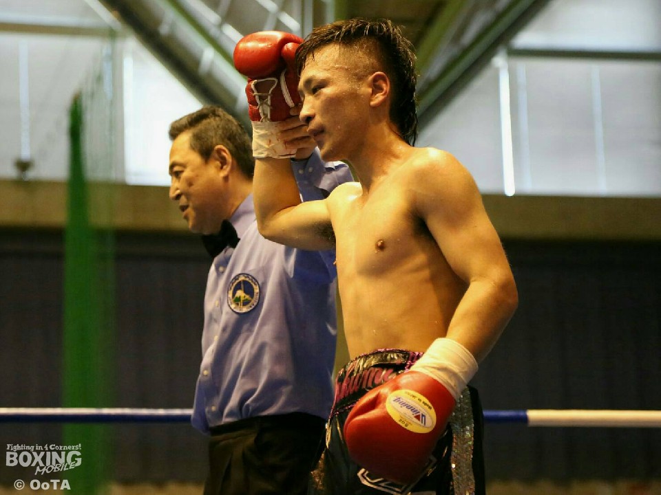 全国4箇所(三重・大阪・岡山・福岡)で開催された16日のボクシング。心地よい春の陽気に包まれた福岡では、日本ミニマム級10位の栄拓海(折尾)がメインイベントに登場。ラフなファイトスタイルを披露したナーヨックレック・シットサイトーン(タイ)と対戦した。