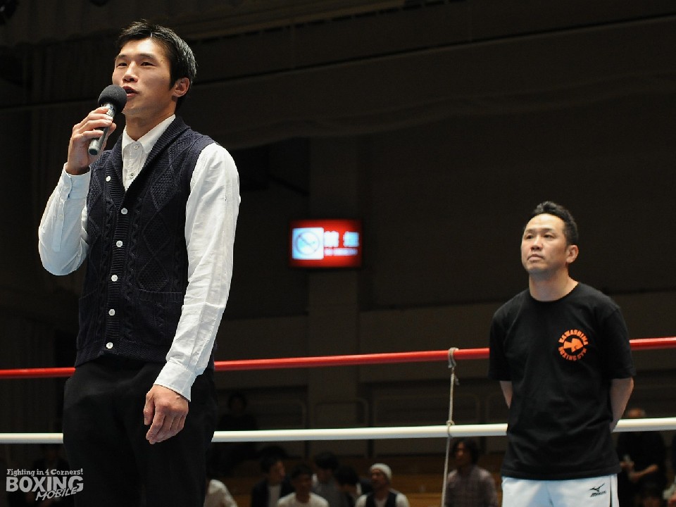 この日のセミファイナルの前には顎の負傷のため試合を中止した日本ウェルター級王者の有川稔男(32=川島)がリングに登場。「今回はこのような形でリングに上がることになりお詫びいたします。早く怪我を治して今度は選手としてリングに上がります」と頭を下げた。