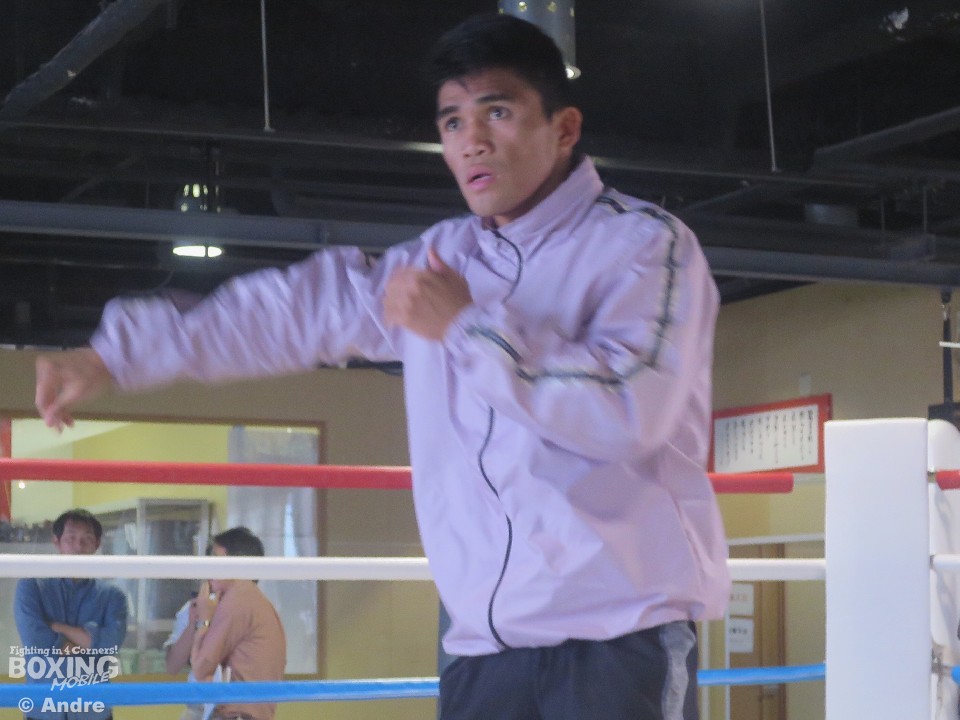 WBO世界バンタム級チャンピオンのマーロン・タパレス(比)が19日、大阪市内のグリーンツダジムで練習を公開した。1年4ヶ月ぶりの来日となったチャンピオンのタパレスは「オオモリをもう一度倒しにきた」と自信満々で語った。