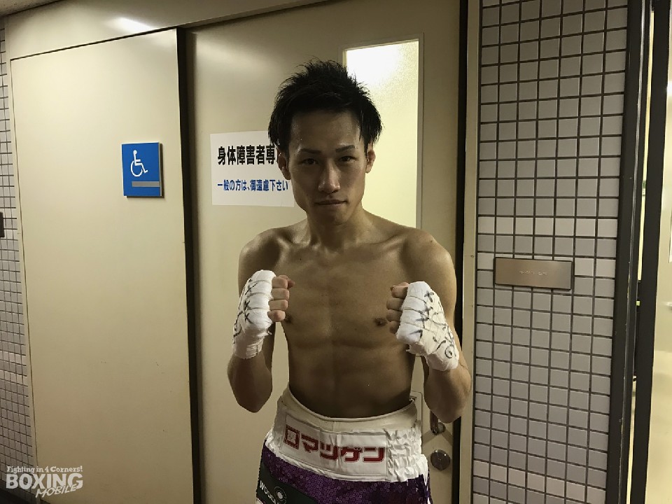 この試合でデビューから無敗の13連勝となった橋詰将義(井岡) は3回と4回にダウンを奪って10度目のKO勝利を収めた。笑顔で控え室に戻った橋詰は「久しぶりにやりがいのある相手と出来て良かったですね。最後のパンチは手応えもありました。ランキング上げて早くタイトルがしたいです。頑張ります」。そろそろベルトが視野に入ってきた。