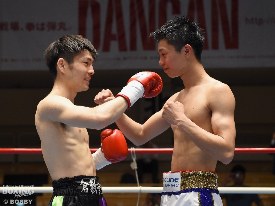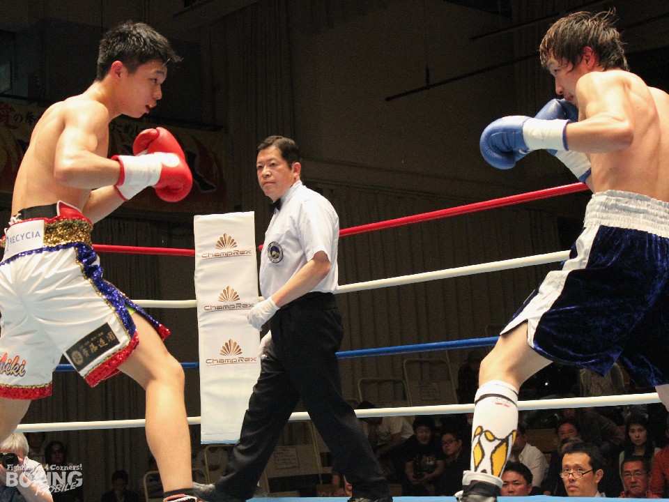 同じくフライ級6回戦で激突した日本同級15位の中谷潤人(19=M・T)と工藤優雅(23=マナベ)の試合は初回、サウスポー中谷が距離を取ってペースを握ったが、続く回は工藤が距離を詰めて左ボディで反撃。すると3回に右フックでダウンを奪った。その後は激しいペース争いとなったが、中谷がアッパーを有効に使い見栄えの良さを作った。1者はドローとしたが、2者は3ポイント差で中谷を支持し決勝戦に進んだ。