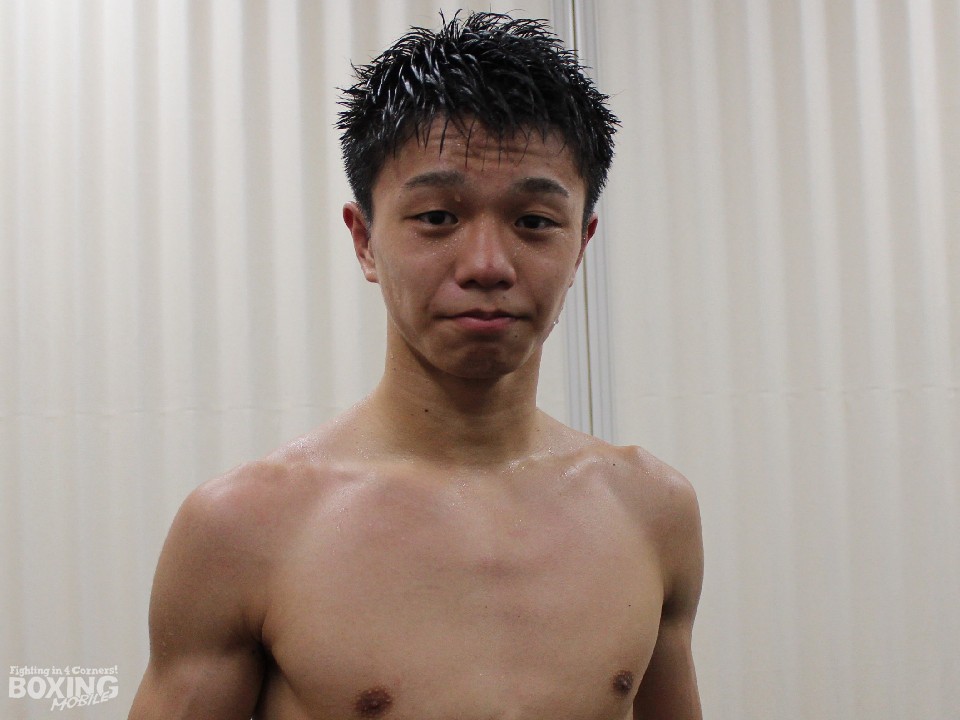 5試合連続KO勝利となった阿久井は「相手にスピードがあったので、下がり際に右が当たると思い伸ばしたら当たった。KO負けしたことのない選手を倒すことができてうれしい」と白い歯を見せた。「自信はまだないが、期待されているのはうれしい。決勝戦の相手は長身サウスポーで得意ではないが頑張りたい」と8月23日(水)に予定されている中谷潤人(M・T)との無敗対決に闘志を燃やした。