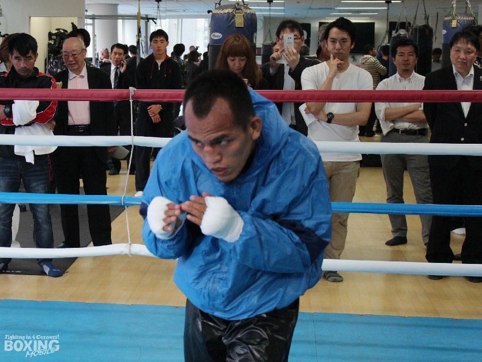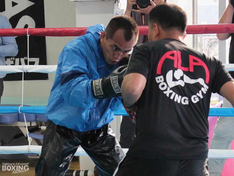 21日(日)の東京・有明コロシアムでIBF(国際ボクシング連盟)ライトフライ級王者の八重樫東(34=大橋)と拳を交えるIBF同級暫定王者のミラン・メリンド(29=比)が17日、横浜市内のジムで練習を公開した。今回が初来日となるメリンドは「八重樫は3階級制覇しているチャンピオンで尊敬している。打たれ強い強靭なボクサーで自分にとってキャリア最大の試合になるだろう」と静かな口調で話した。