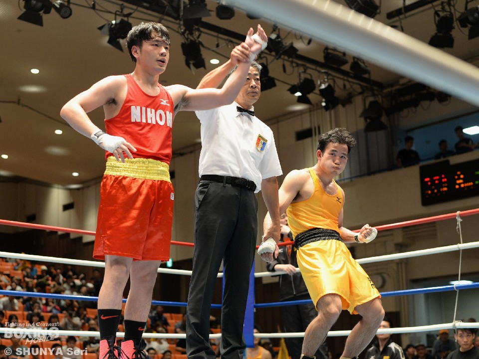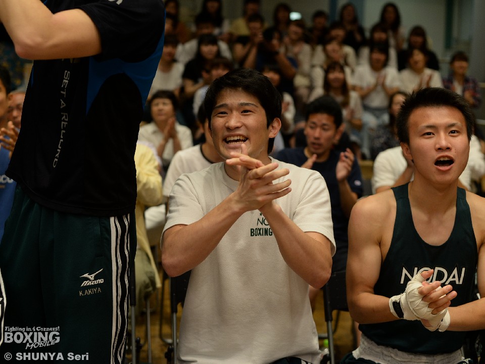 駒澤大学対中央大学のライトウェルター級戦で行われた沖島輝(駒大)と岡澤セオン(中大)の全勝対決では、昨年のアジア大学選手権・金メダリストである沖島が3-0(2者が引き分け)でポイント勝ち。試合後に沖島は「(岡澤は)先日のアジア選手権で戦った選手よりも巧かった」と語り、この階級に成松大介(自衛隊体育学校)が転向したことについて「しっかり練習して戦う日の準備をしていく」と全日本王者として動じない構えを見せた。その成松のスパーリングパートナーとしても重宝されてきた岡澤は「初回と2回を取るスタミナ配分で戦った。勝ったかとも思ったけど少し足りなかった」と悔しがった。