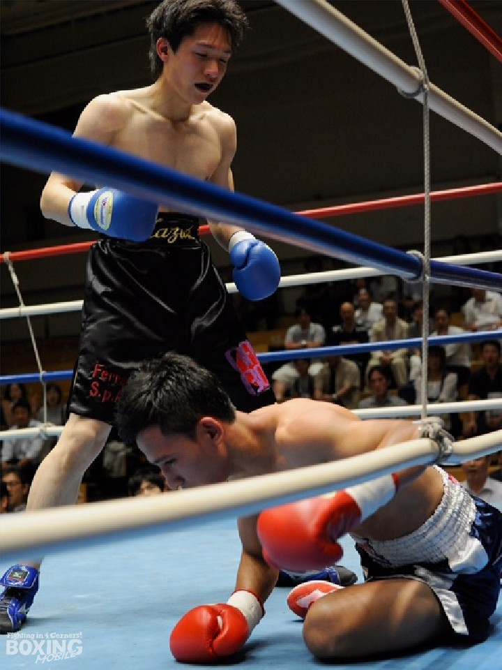 スーパーウェルター級8回戦でポンパノム・ペットプームジム(30=タイ)と拳を交えた諏訪は初回からジャブでリズムを掴むと、ラウンド終了間際にボディから左フックで先制のダウンを奪った。続く回に左フックで倒すと連打でレフェリーストップを呼び込んだ。