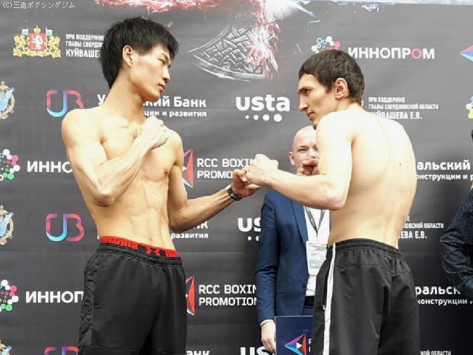 日本からロシアに乗り込んだ日本スーパーフェザー級1位の金子大樹(横浜光)、OPBF東洋太平洋ライト級3位の市川大樹(駿河男児)ら4選手の前日計量が試合地のエカテリンブルクで一般公開され、全員一発で計量をクリアした。