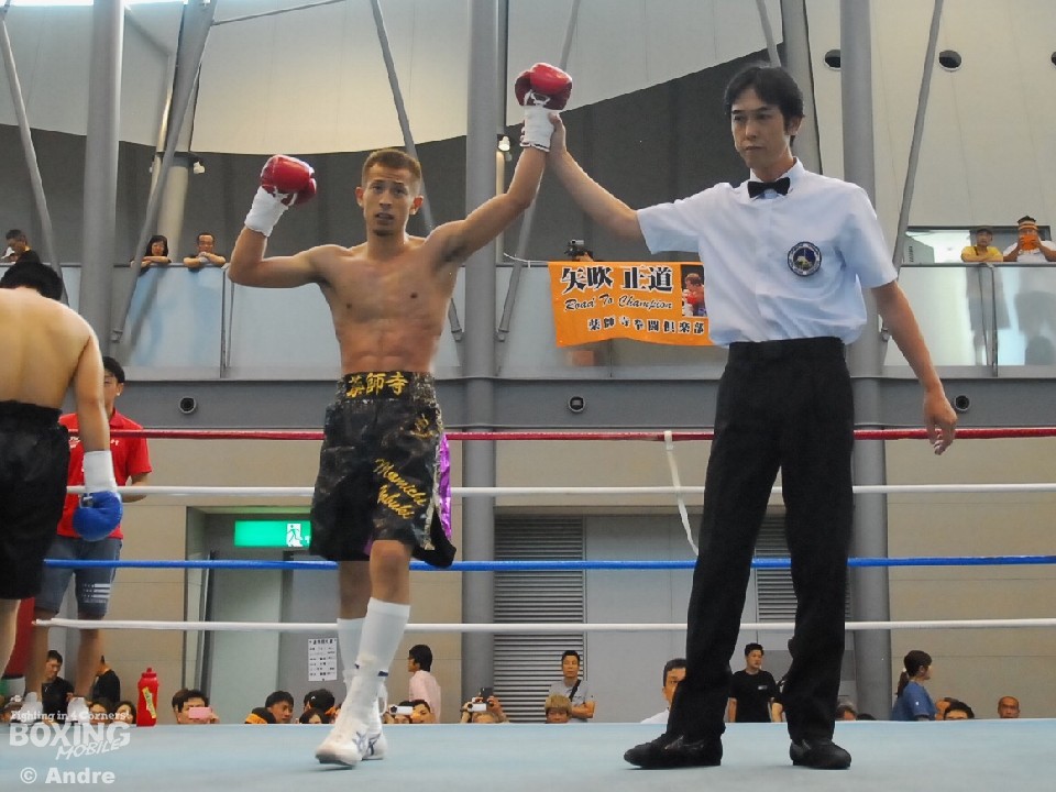 試合は、24戦のキャリアを持つ平井に挑んだ矢吹は、序盤から一方的に平井を圧倒してみせた。1ラウンド開始から頭を下げ前進して左右のフックを狙った平井に対して、矢吹は右ストレートを打ち下ろし先制すると、右のアッパーをねじ込む。平井は距離を詰め、フックを振るうが矢吹のボディワークについていけず。2ラウンド、右のアッパーで平井を起こした矢吹は右を一閃。わずかに膝を揺らした平井の様子をみたレフェリーが試合をストップ。矢吹はB級昇格初戦をKOで決めた。