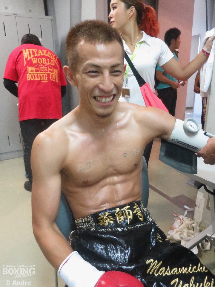 試合後、矢吹は「平井選手は頭を下げてくるのも知っていたんですけど、やりにくかったですね。打つところがないというか、おでこばっかり当ててました」と、試合を振り返った。「あと1回勝てばA級に上がれるので、しっかりと勝って、チャンピオンを目指します」と、笑顔で会見を締めた。