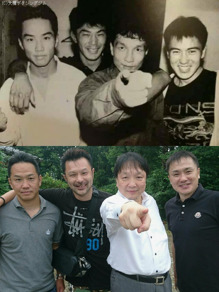 24日、90年代に活躍したヨネクラジムの門下、大橋秀行氏(大橋ジム会長)、川島郭志氏(川島ジム会長)、松本好二氏(現大橋ジムチーフトレーナー)、松島二郎氏の元チャンピオン4人が療養中の米倉健司会長(83)の下に集結。恩師を見舞うとともに、26年前と同じポーズで写真に収まった。