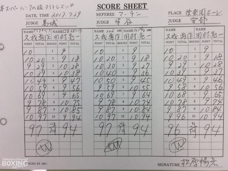 この試合を観戦した前日本同級王者で現在は2位にランクされている石本康隆(35=帝拳)は「素直に良い試合だった。これぞ後楽園ホールで行われるタイトル戦だと思った。田村選手のタフさに驚かされた。ポイント的にはもっと競っているかなと思ったが、久我選手の方がビッグパンチを当てていた。ちょっとした技術の差があり、パワーもあったので久我選手の方がジャッジにアピールできたのではないか。試合を見に来てよかった」と感想を口にした。