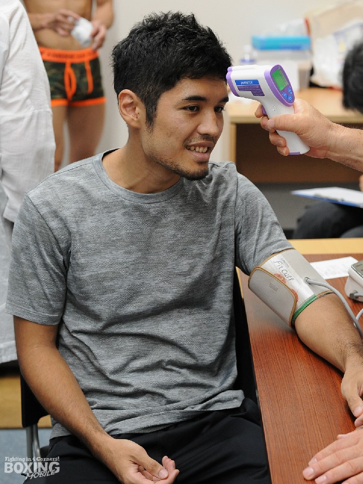 4月に斉藤幸伸丸(輪島功一スポーツ)との決定戦を7回TKOで制し、日本スーパーウェルター級王者に就いた井上岳志(27=ワールドスポーツ)が、明日10日の後楽園ホールで1位の長濱陸(25=白井・具志堅スポーツ)を迎え初防衛戦に臨む。その前日計量が都内の日本ボクシングコミッションで行われ井上、長濱ともリミットの69.8sを一発でクリア。明日の対戦に向け意気込みを語った。