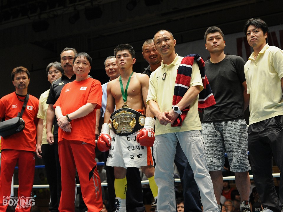 8月いっぱいで54年の歴史に幕を閉じる名門ヨネクラジムの最後の試合が22日に後楽園ホールで行われ、所属する溜田剛士(23)が小坂烈(19=真正)と日本ユース初代フェザー級王座を争った。試合は終始アグレッシブに攻めた溜田が3回終了TKO勝ちし、有終の美を飾った。試合後のリング上ではタイトルを獲得した溜田を囲み、元WBA・WBC世界ミニマム級王者の大橋秀行氏をはじめ、とするかつての門下生10人が集結した。