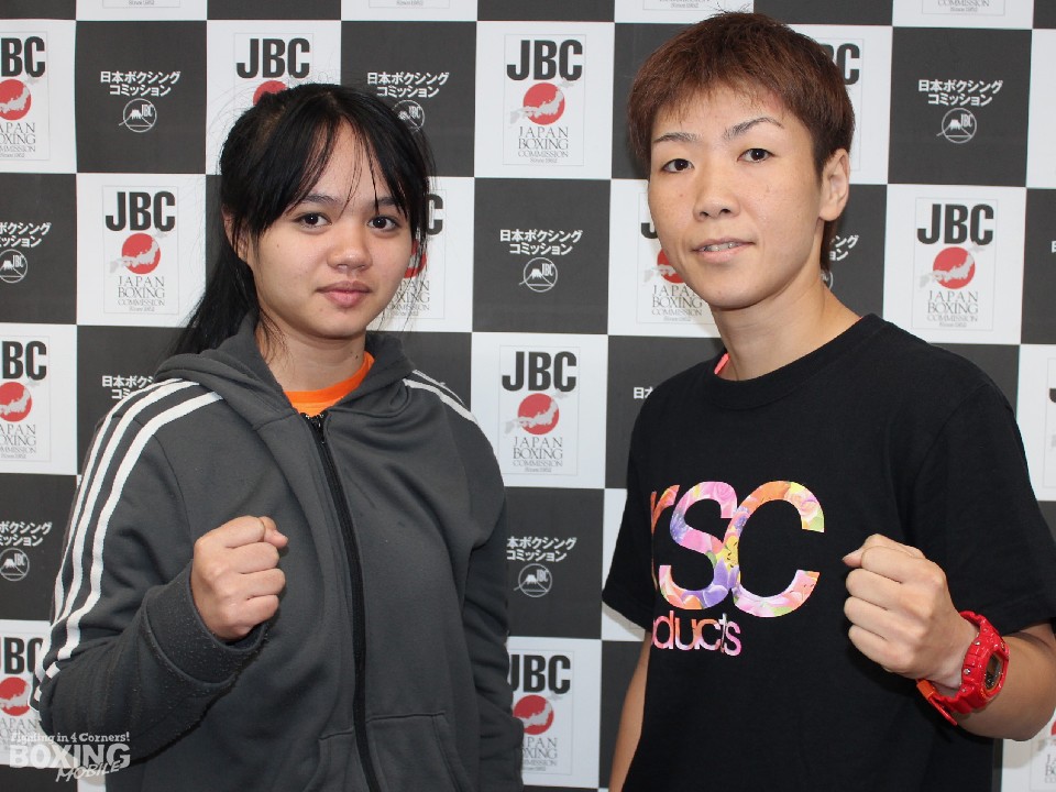 一方、500gアンダーの45.7kgで秤を降りた日本同級1位の日向野は「(相手は)スタミナがあると聞いているが、自分もスタミナには自信がある。先のことを見据えて必ずトーナメントを勝ち上がりたい」と日本人初の女子プロボクサーとしてアメリカで活躍し、現在70歳になる高築正子トレーナーとの二人三脚で頂点を目指す。