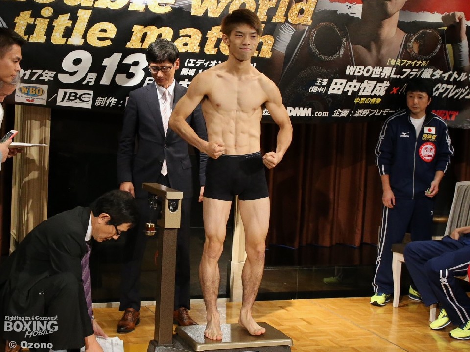 WBO世界ライトフライ級チャンピオンの田中恒成(畑中)と、挑戦者で同級13位のパランポン・CPフレッシュマート(タイ)が12日、大阪市内のホテルで調印式と前日計量を行うため姿をみせた。2度目の防衛戦を迎えた田中は「圧倒的な内容で勝ちます」と、意気込んだ。