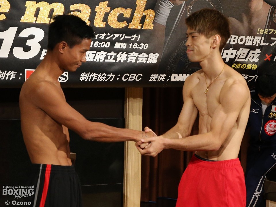 計量に入った両者は、田中は48.9kgのリミットでパス。対して、パランポンは48.7kgの200gアンダーでパス。